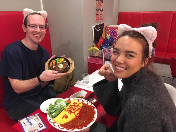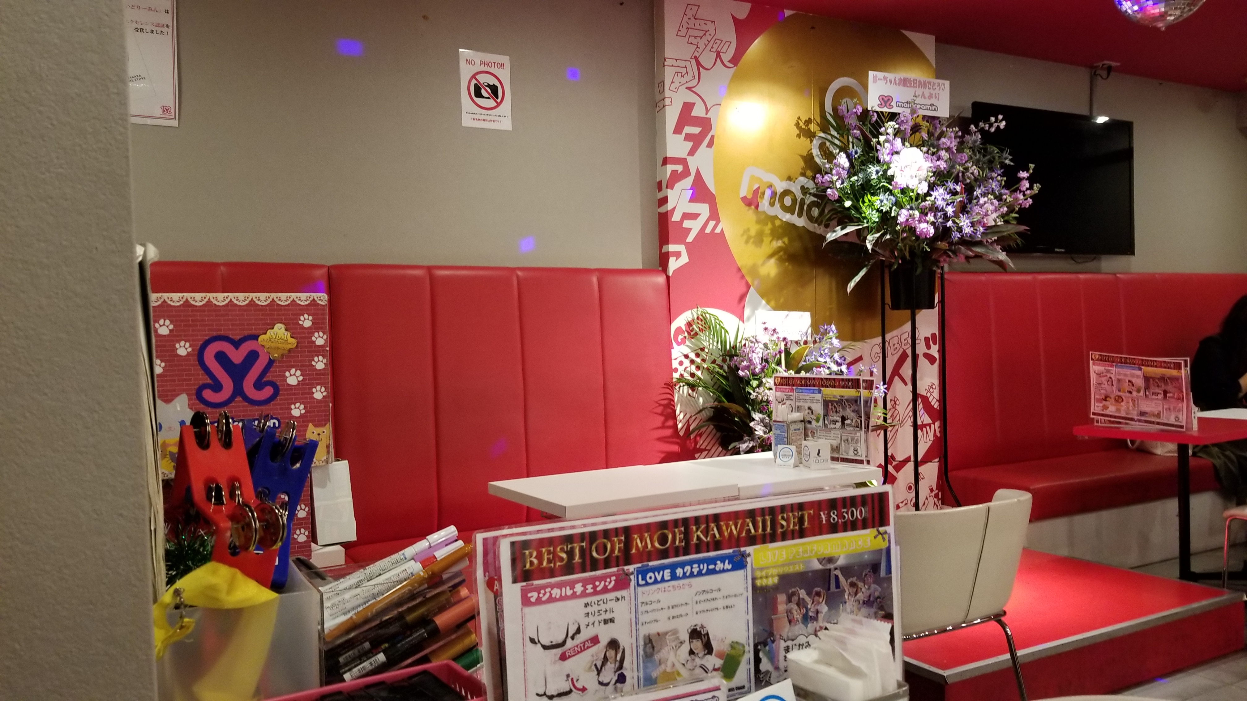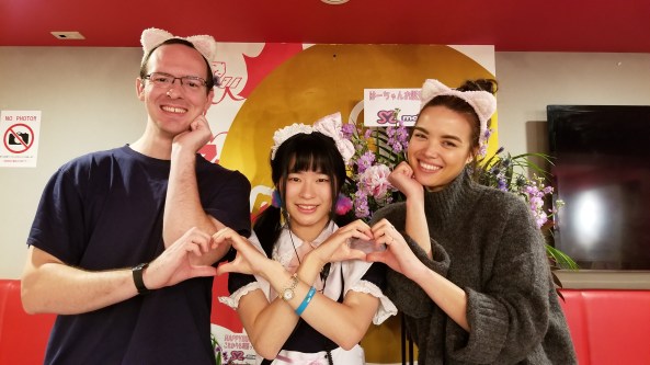 In order to call a maid over, you’re not allowed to say 「すみません」. You have to say 「にゃんにゃん」, which is the sound a cat makes (equivalent to the English “meow-meow.”)