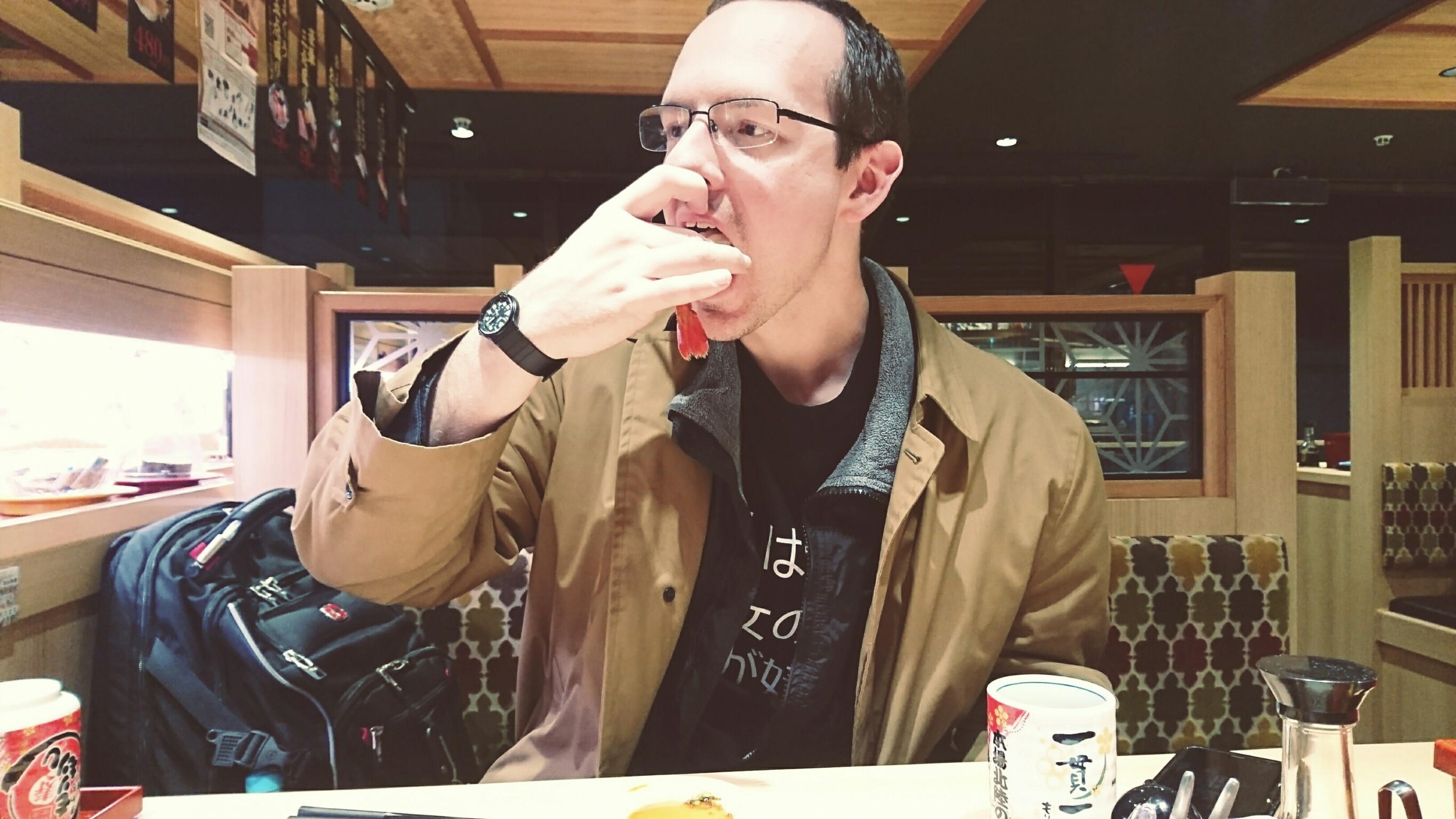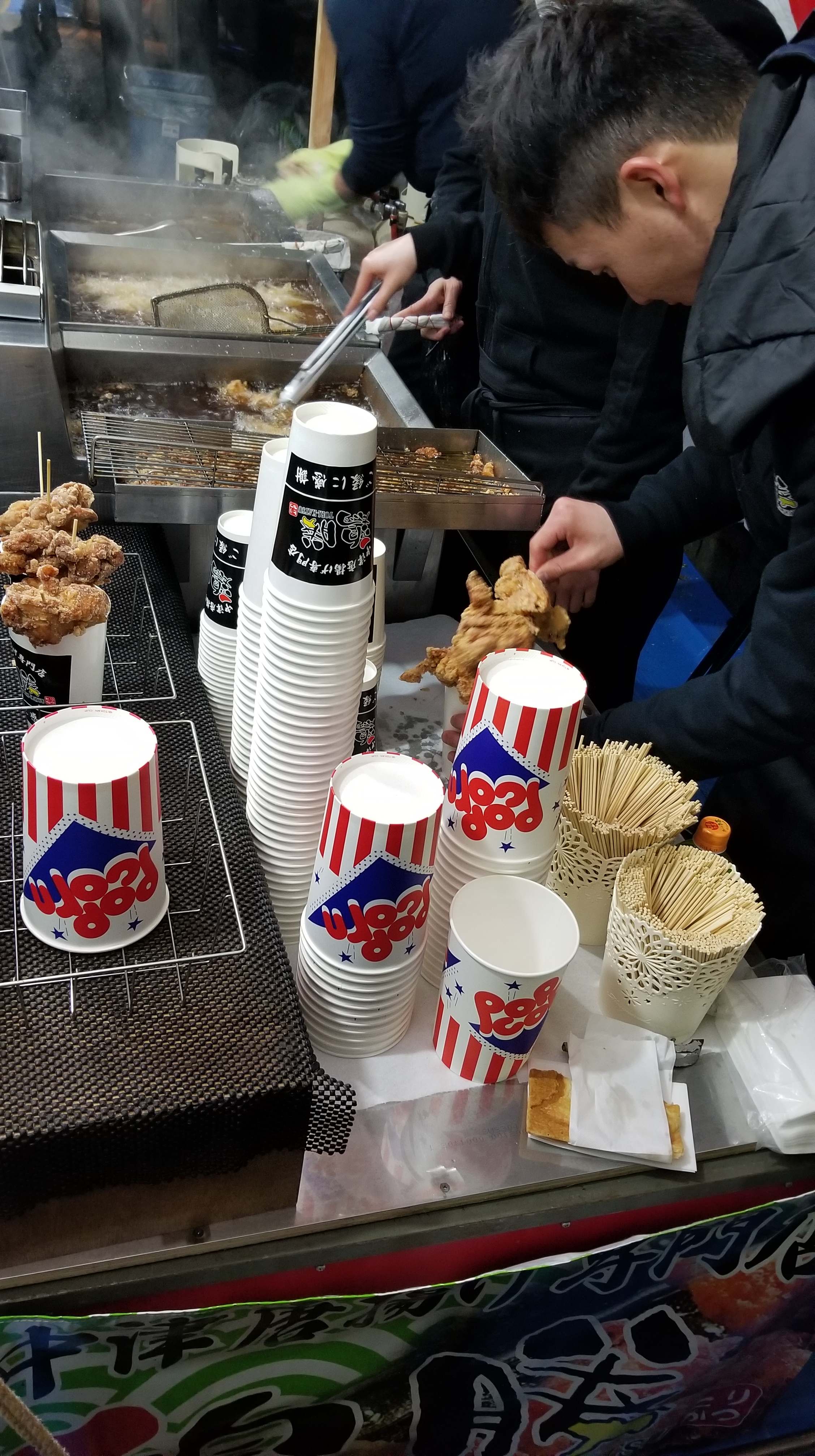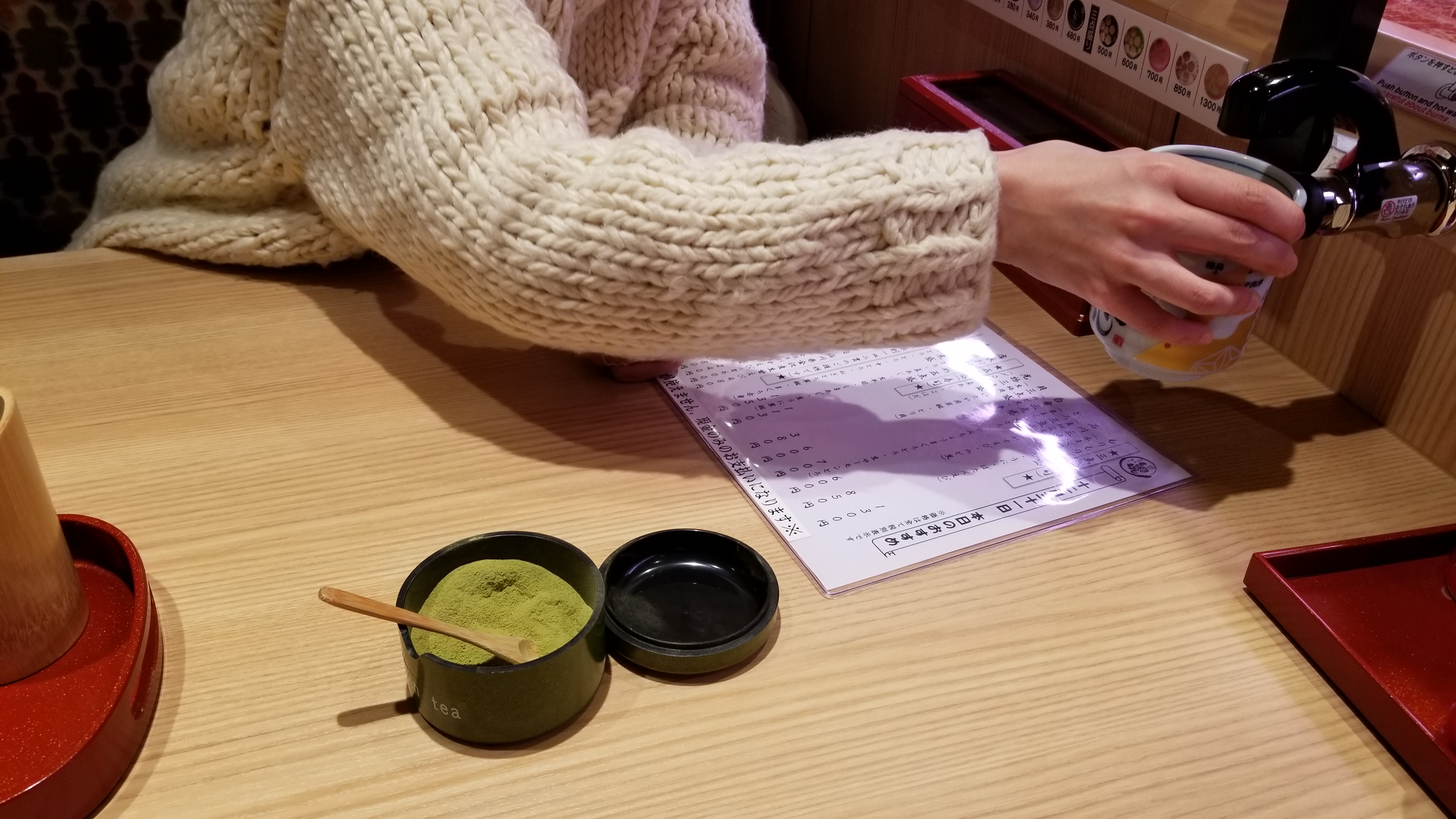 Something cool happened while I was eating. A family came in and the father started talking to one of the servers. I barely understood anything he said, but I did hear the words 「四人ですけど。」(“We’re four persons”). I looked and noticed that there were three empty seats next to me and one empty seat to my left. Then I realized what was going on and and moved over so that the four empty seats were together. Everyone was very appreciative. Man, I’m glad that I caught those last two words. I understood little else.