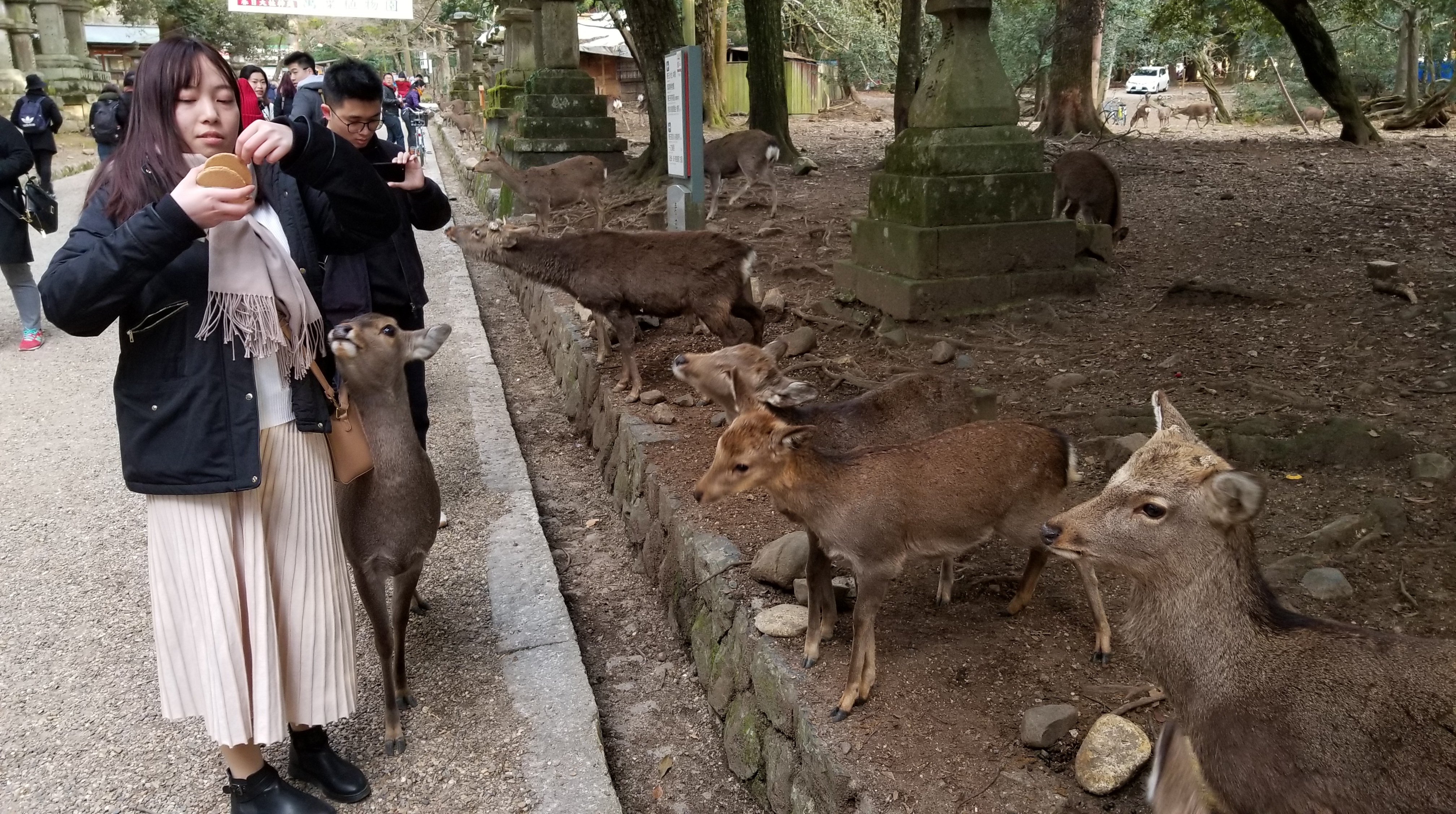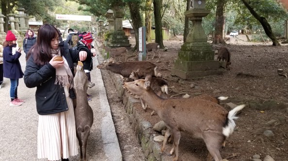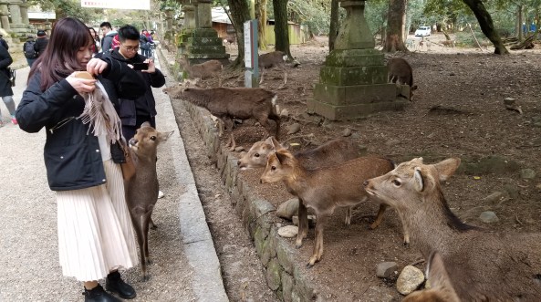 You can purchase 鹿せんべい (deer food wafers) for about a dollar.