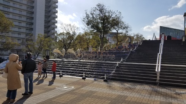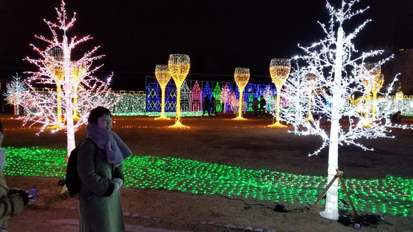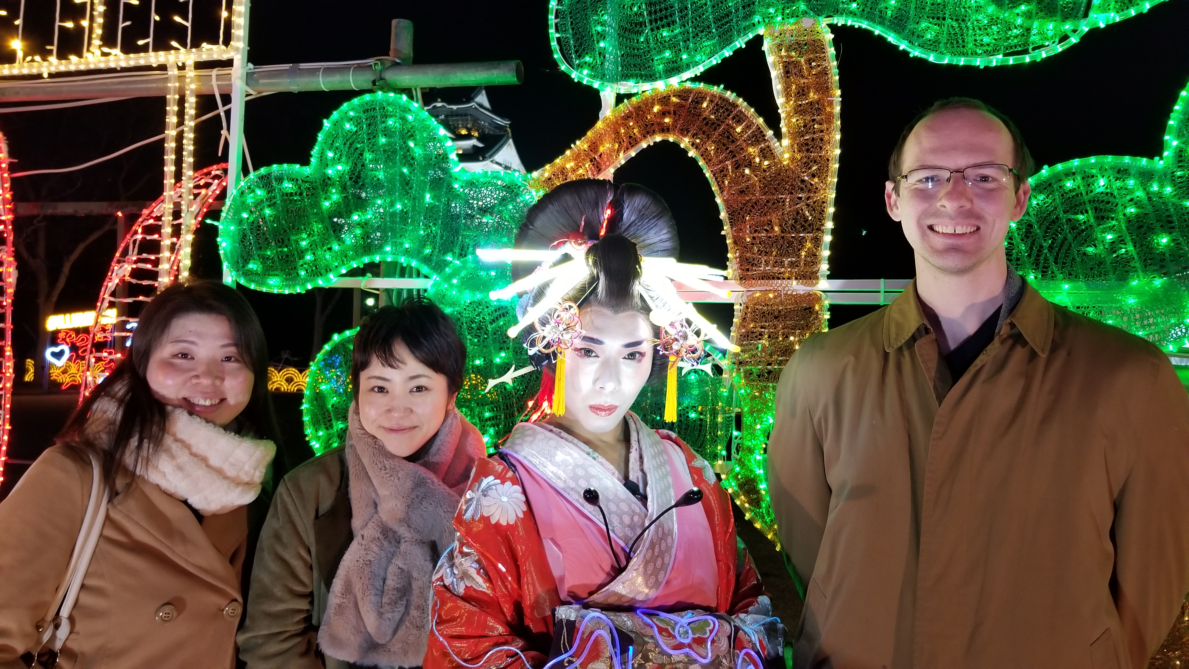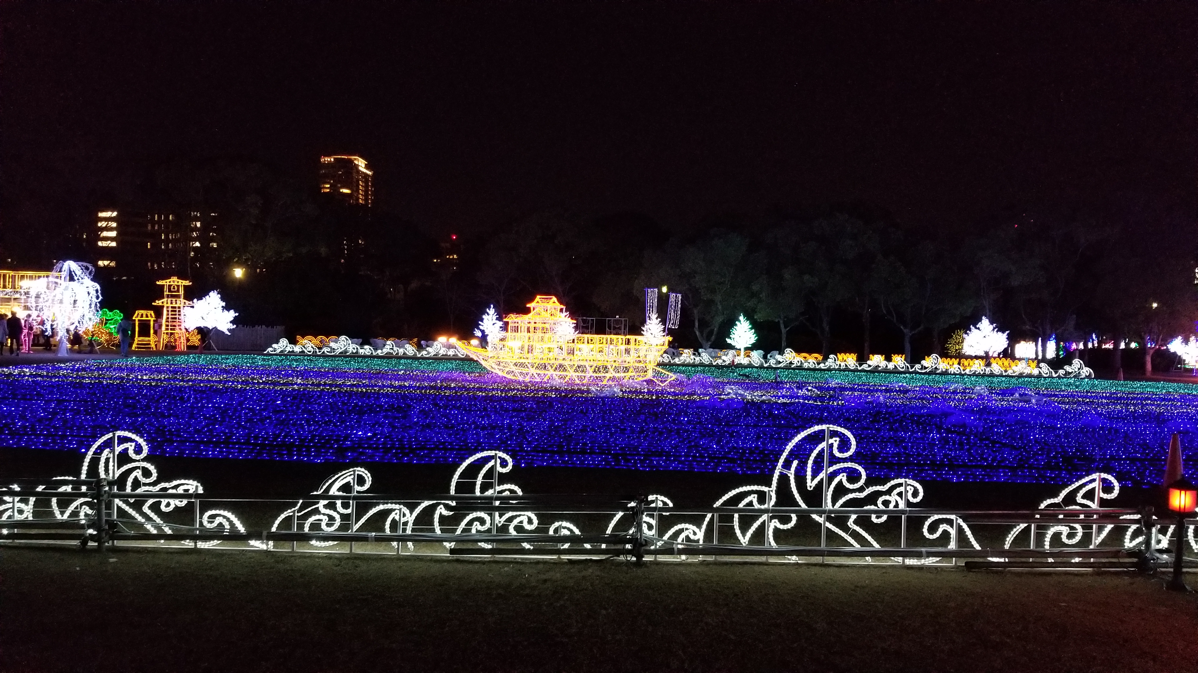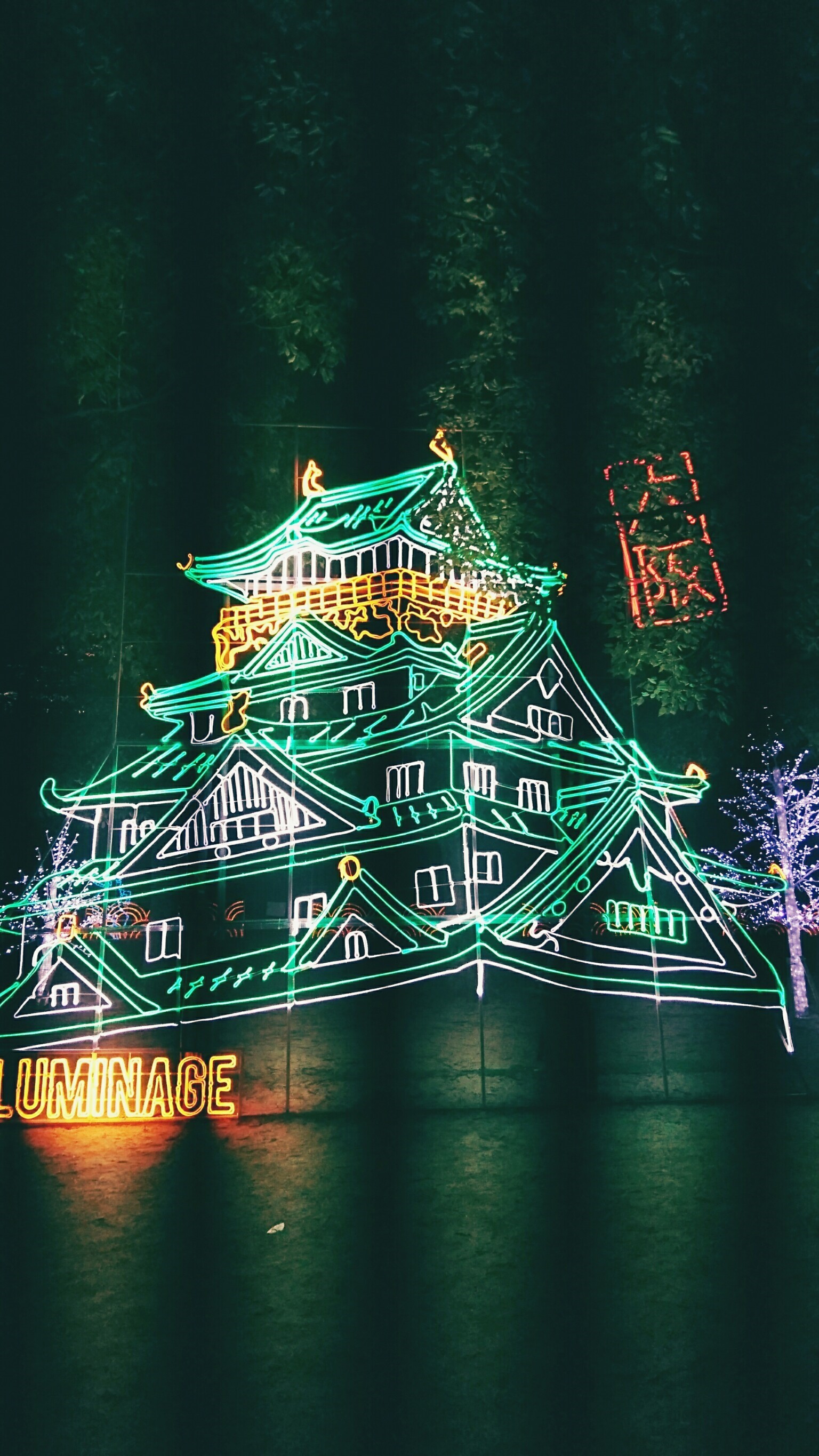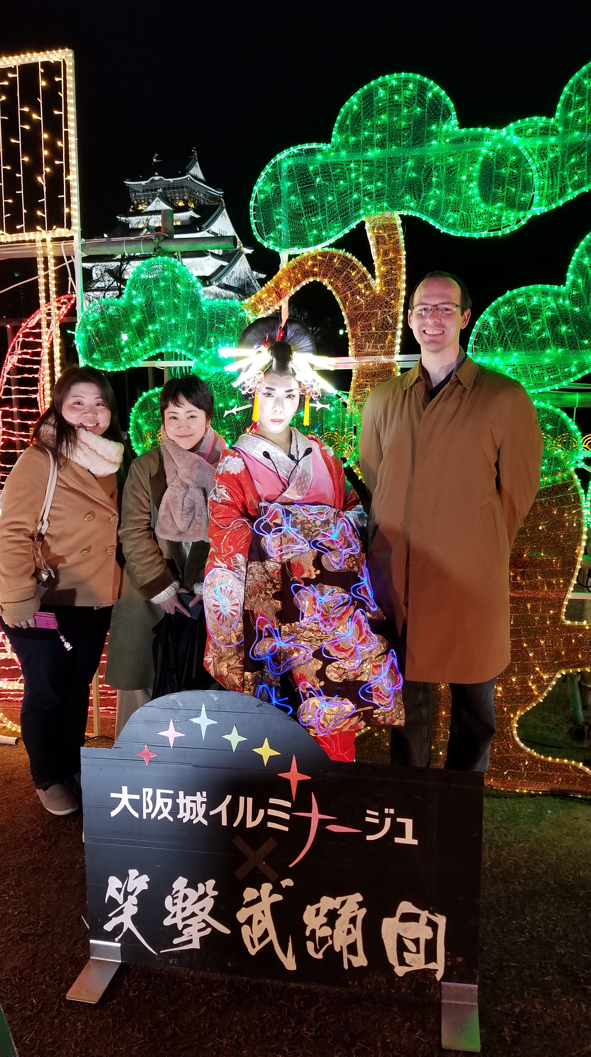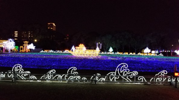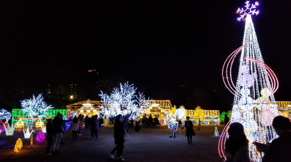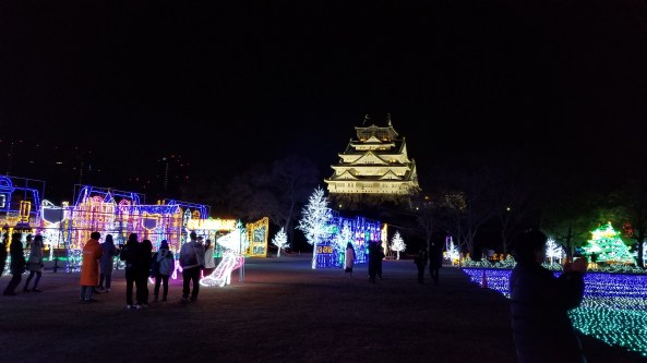 This event, called Illuminage, runs from November until February, I think. It’s setup in Nishinomaru garden to the west of Oosaka Castle.