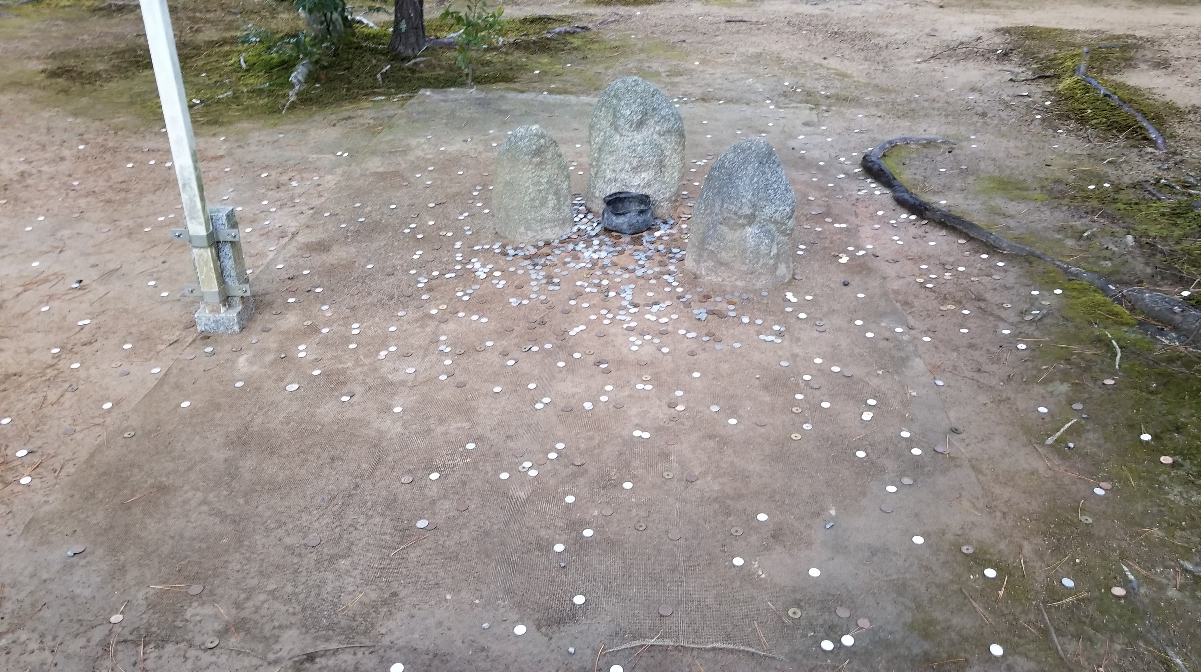 Visitors toss their coins and try to land one in the pot.