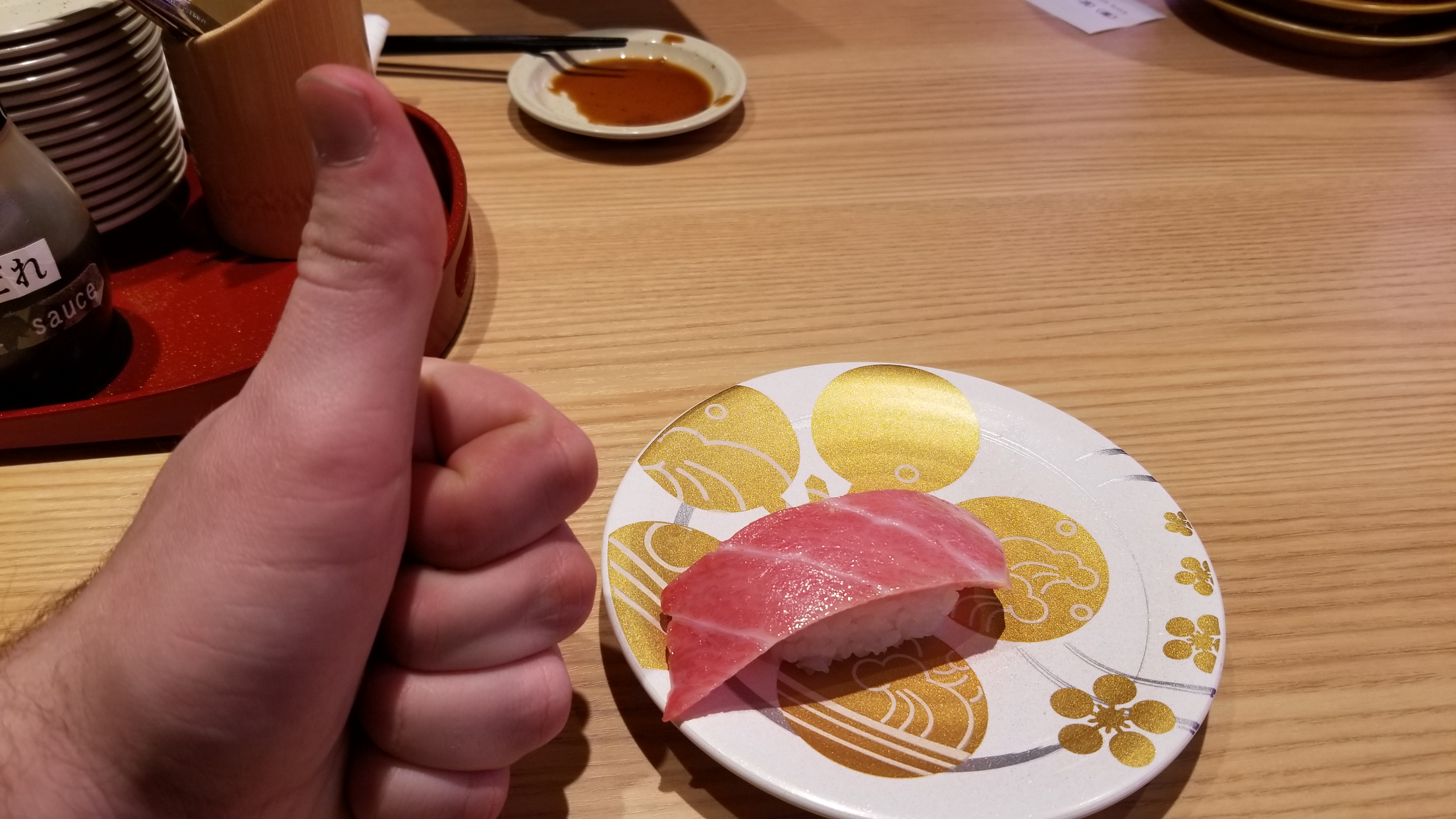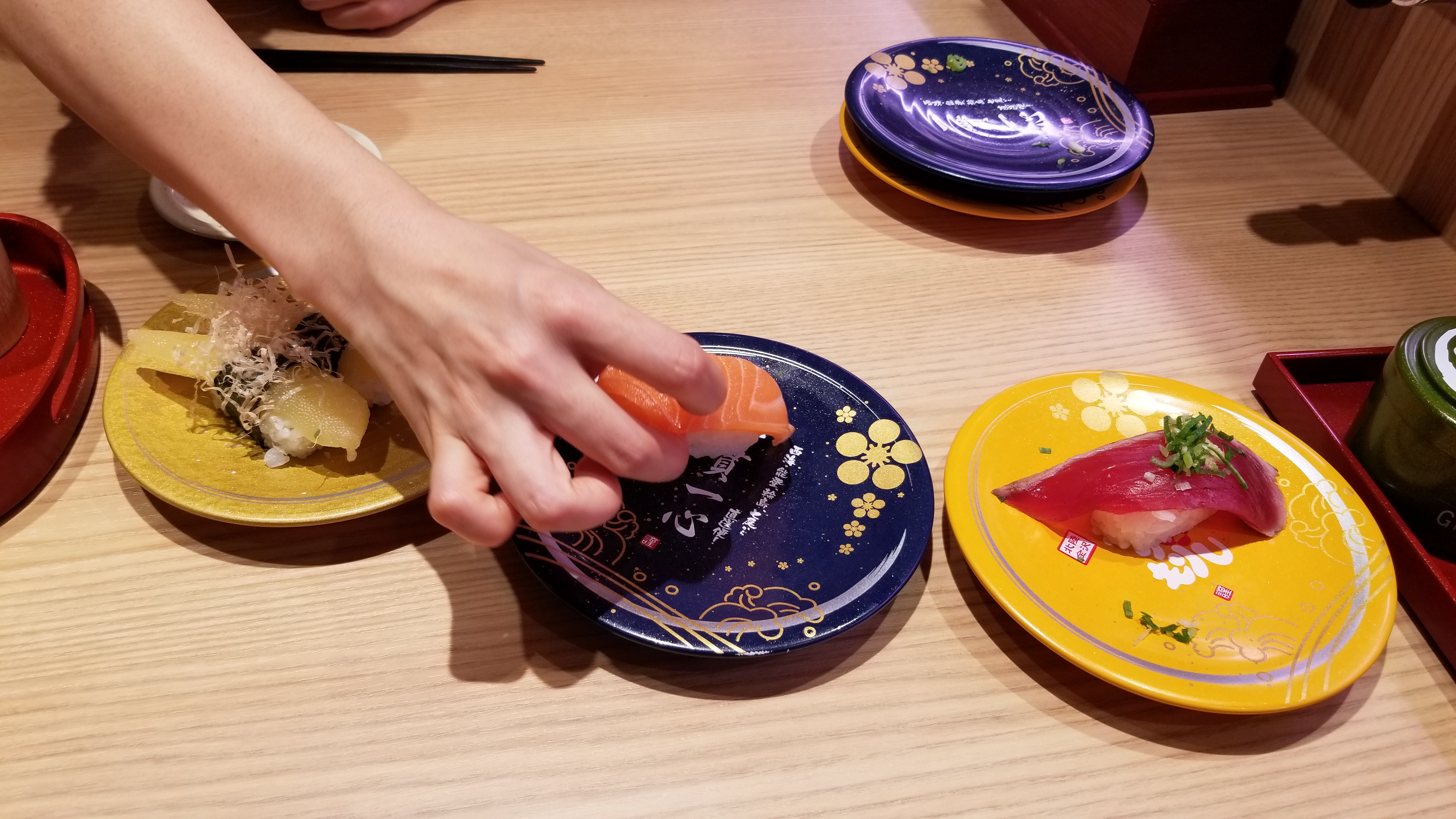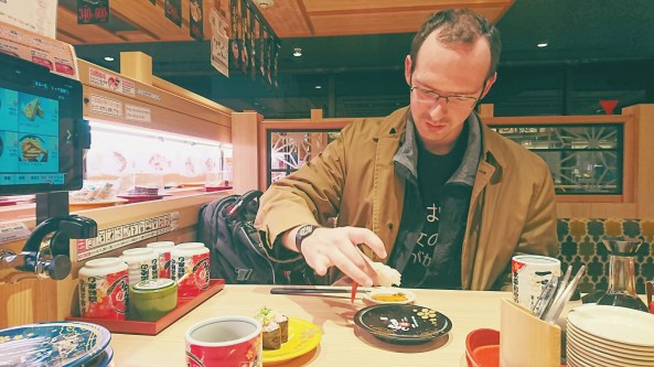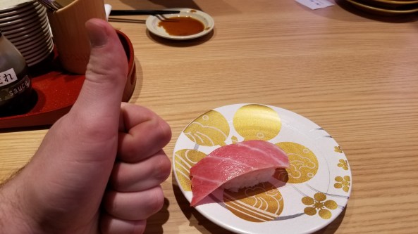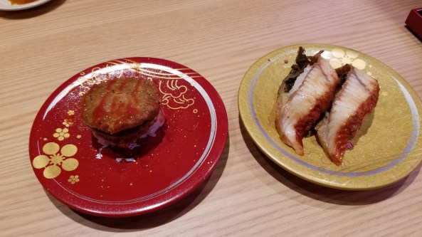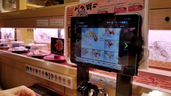 Not only do they have items come by on the conveyor belt, but you can make an order and it will come to you on a shinkansen.
