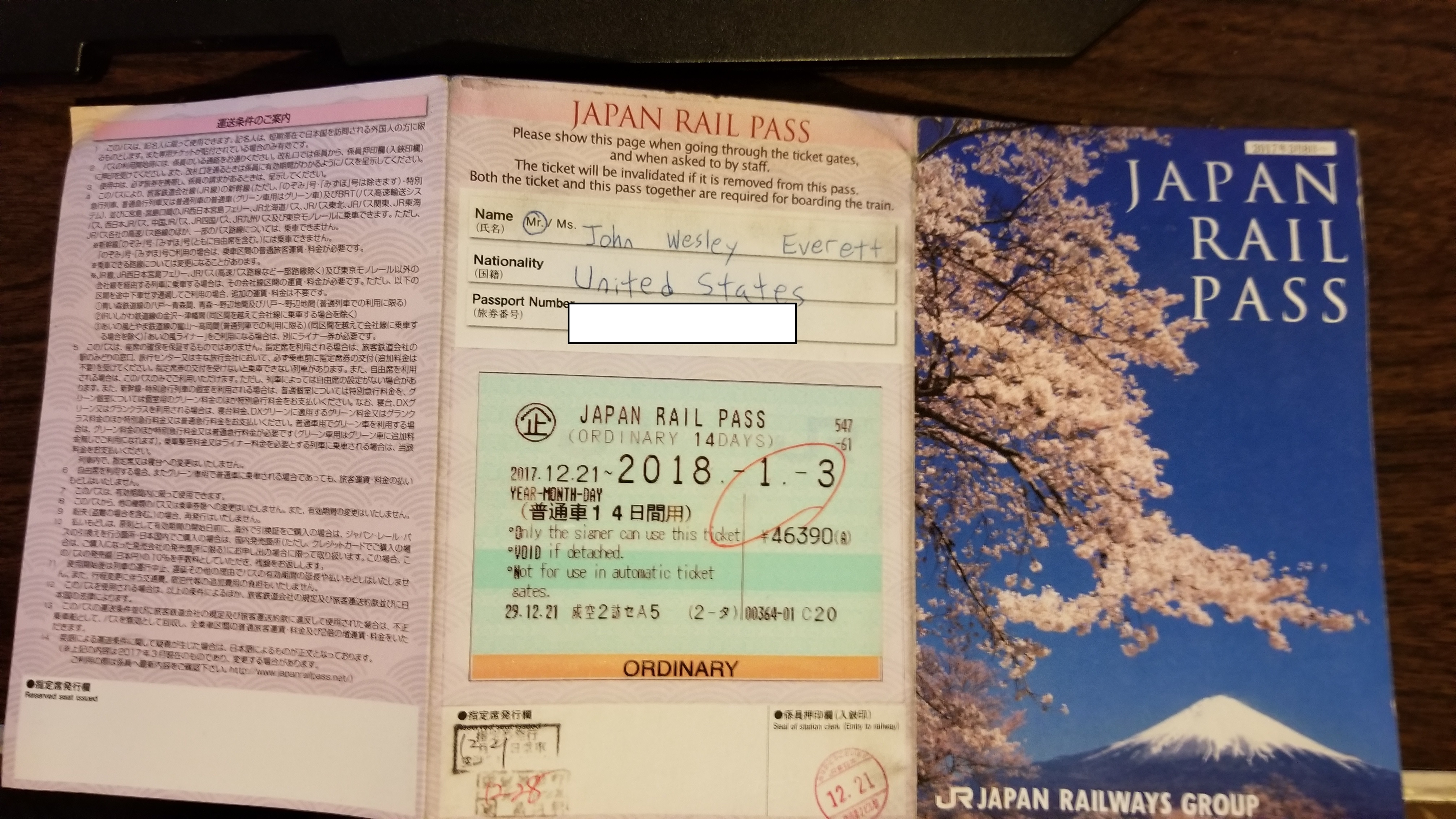 Unfortunately it was time to go after this. Kaoru went with me to Shin-Oosaka Eki and saw me off at the gate of the shinkansen. We didn’t get a picture because it was an emotional moment, so look at my JR pass instead.