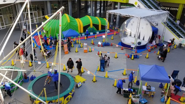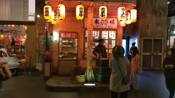 The rides here are all very creative. Because they have such extremely limited space, they have to get creative with the rides. This one has a car that slides in front of a giant screen and then moves in place. It’s difficult to describe, but it gives you the illusion of motion because it moves in place in response to the video that plays.