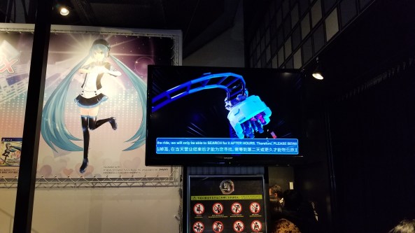 This roller coaster was great fun! It spun around in every way imaginable and it had a built-in Hatsune Miku-themed rhythm game. I only scored a 57% but still managed to get 1st place somehow.