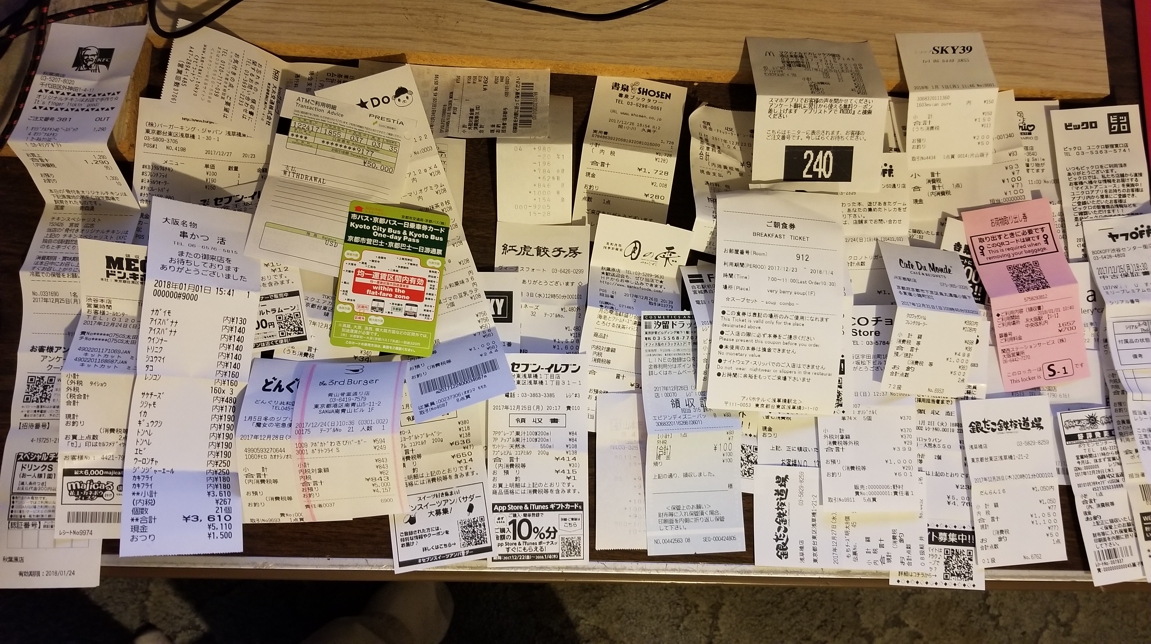 This is a picture of (almost) every receipt from Japan. That’s about $1,500 right there.