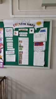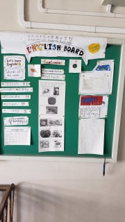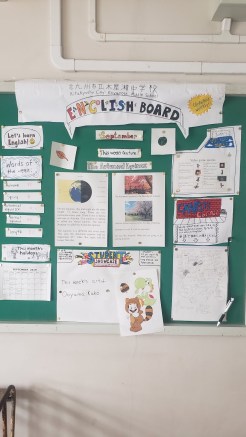 This is my desk at school, complete with pad for kanji practice.