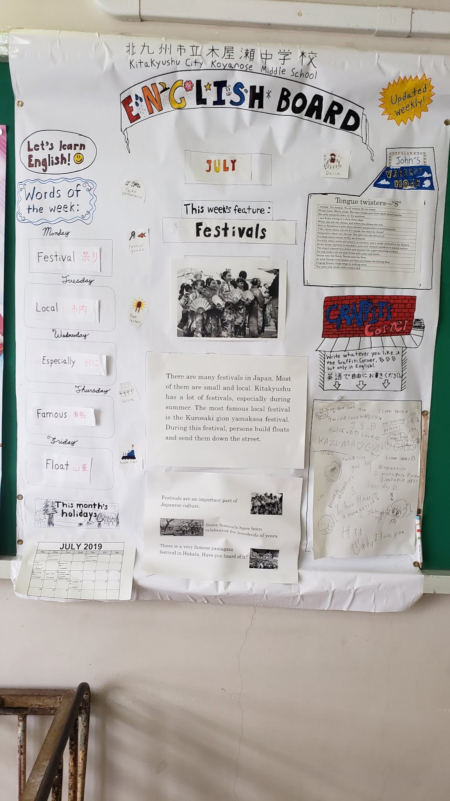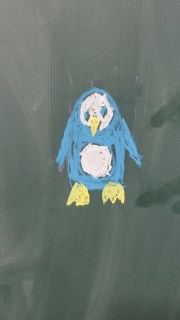 The students went over a worksheet that included animals on it. I drew a penguin, which was one of the animals. The next day, I was pleasantly surprised to see that not only was the penguin still there, but it was enshrined, as seen below.